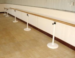 固定式多立柱舞蹈把桿可調升降桿:采用噴塑與鍍鉻處理主體顏色為珍珠白,表面光潔美觀。優質電渡洛圓鋼,立柱為鋼管,內有實心圓鋼作升降桿。可調節高度為7個檔,7.5厘米一個檔。